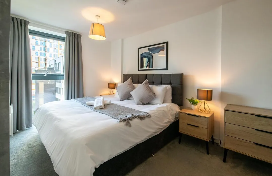 El apartamento cuenta con 2 dormitorios. Los huéspedes encontrarán 2 baños en el Apartamento 2-Bed Flat In Sports Hub - Walk To Mufc & Cricket. Además, hay secadora y toallas.